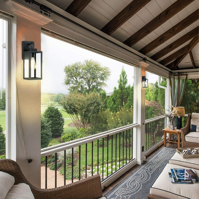 14 Outdoor Wall Lights Dusk To Dawn Outdoor Lighting Wall Mount Exterior Light Fixtures For House Porch Garage With Clear Glass Lantern Shade 2 Pack Walmart Com